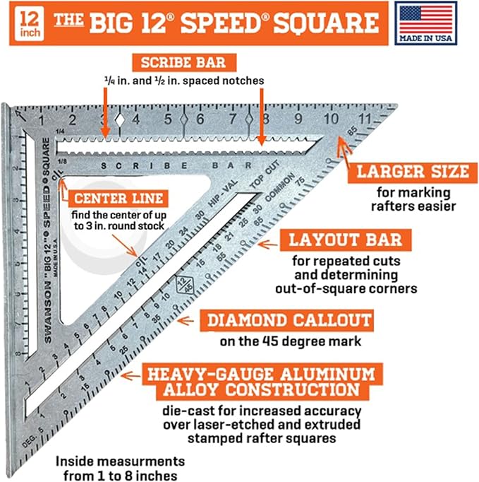 Swanson Tool Co S0107 "Big 12" 12-Inch Speed Square Layout Tool with Blue Book