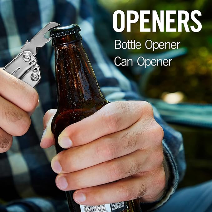 - 14 TOOLS IN 1: Equipped with 14 tools to handle almost anything: knife, pliers, screwdrivers, wire cutters, a wire stripper, scissors, a package opener, bottle and can openers, a file and a ruler