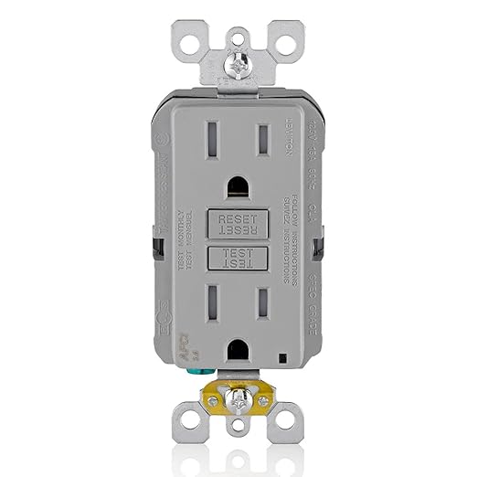 Leviton AFCI Outlet, 15 Amp, Self Test, Tamper-Resistant with LED Indicator Light, Protection from Electrical Fires, AFTR1-GY, Gray