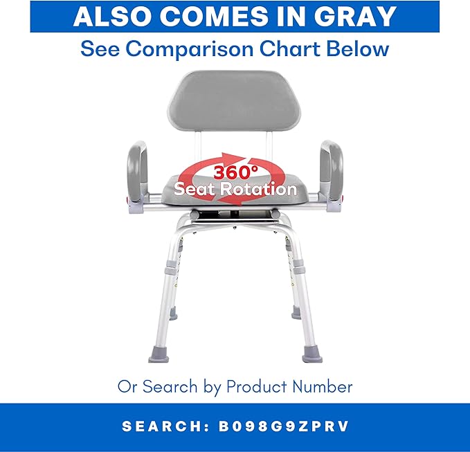 - SWIVEL-SEAT - Significantly easier and more comfortable to use than a standard fixed seat chair. The swivel seat makes transfers to and from the chair much safer by eliminating potential slip and fall injuries and drastically reduces the chances of skin tears. important-prior to ordering please review dimensions carefully to ensure product will properly fit user as well as physical environment