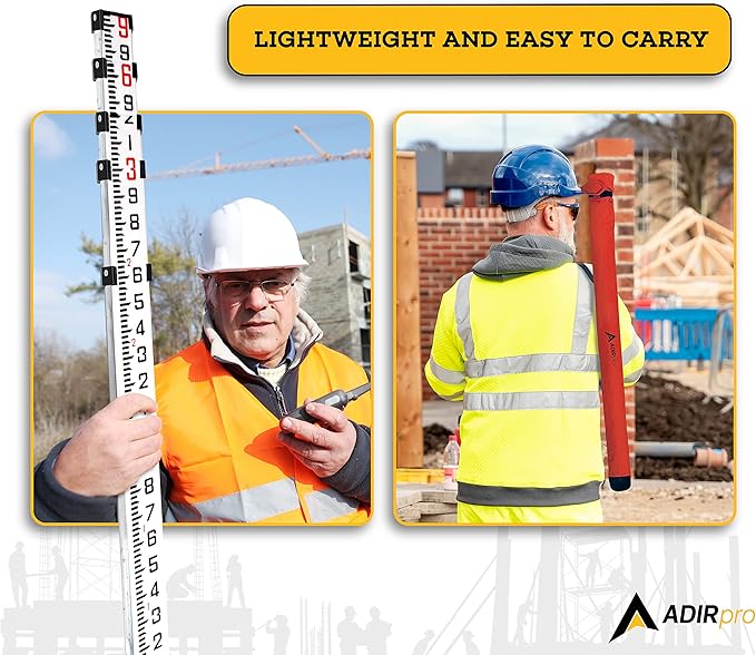 AdirPro 9-Foot Aluminum Grade Rod – 10ths, Dual Sided 5-Section Telescopic Leveling Rod – Bubble Level and Soft Carrying Case Included