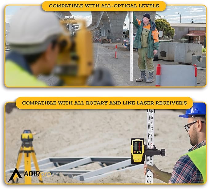 - VERSATILE USE. The AdirPro Aluminum Rod is ideal for leveling with construction laser and optical surveying tools. It can also be used for reading elevation changes on your job sites. It is designed for both outdoor and indoor use.