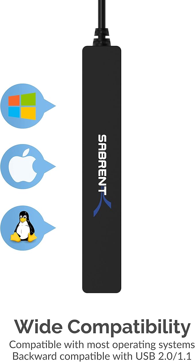 SABRENT 4 Port Portable USB 2.0 Hub (9.5" Cable) for Ultra Book, MacBook Air, Windows 8 Tablet PC (HB-MCRM)