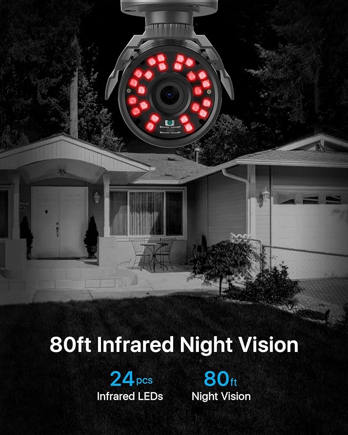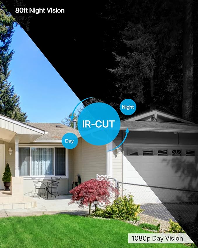- 【80ft Night Vision】 get a sharp and crisp image day or night with the camera's automatic IR-CUT filter Up to 80ft night vision in total darkness and 130ft Night vision in ambient light.More than 3.0Lux the night vision is color.