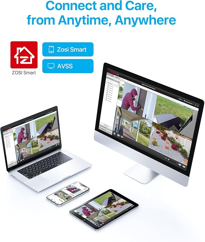 - 【View from anywhere anytime】The free app Zosi Smart lets you see all of your cameras in one place. Check in on your home or business wherever you have an internet connection. Free App for Live View & Playback on Smart Devices with WiFi or 2G/3G/4G Anywhere Anytime