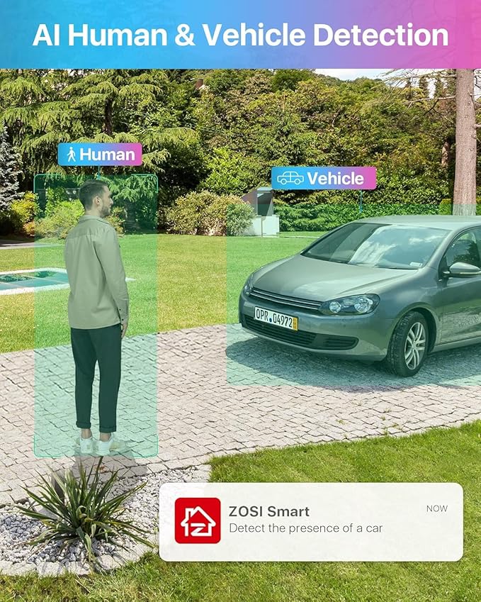 - 【AI Human/Vehicle Detection】Experience peace of mind with our AI-powered detection system that accurately identifies and alerts you to any person or vehicle. Stay connected through our free app for live viewing and playback on your smart devices from anywhere, anytime