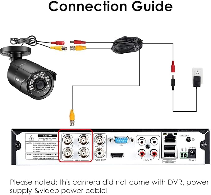 - 【Not Include CCTV Cable and Power Supply】 1, this is a hard-wired camera, it need to connect the cctv cable and power supply(Not included). 2, this camera could not work seperately,it need to connect to the DVR to work