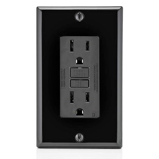 Leviton GFCI Outlet, 15 Amp, Self Test, Non Tamper-Resistant with LED Indicator Light, Protection from Electric Shock and Electrocution, GFNT1-E, Black