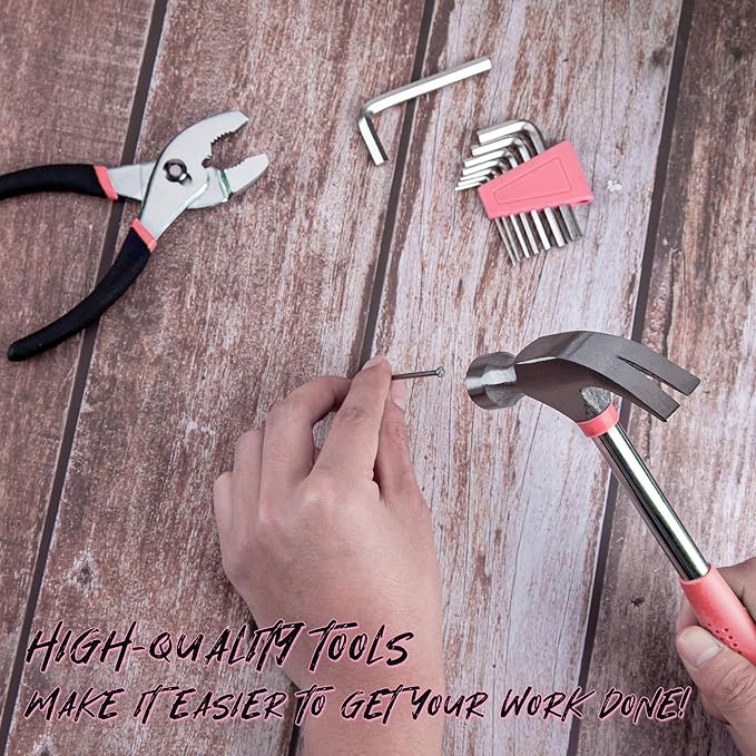- Great gift idea: The pink tool set makes for a great gift idea for the DIY amateur or the avid handyman.