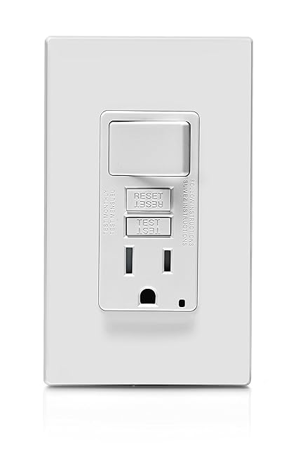 Leviton GFCI Switch Outlet Combo, 15 Amp, Self Test, Tamper-Resistant with LED Indicator Light, Saves Space, GFSW1-W, White