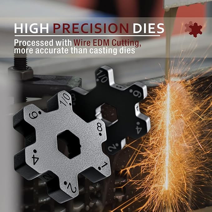 - 【Precise dies】Hexagonal rotating dies are processed with Wire EDM Cutting, more accurate than normal casting dies. Ensure solid compressions.