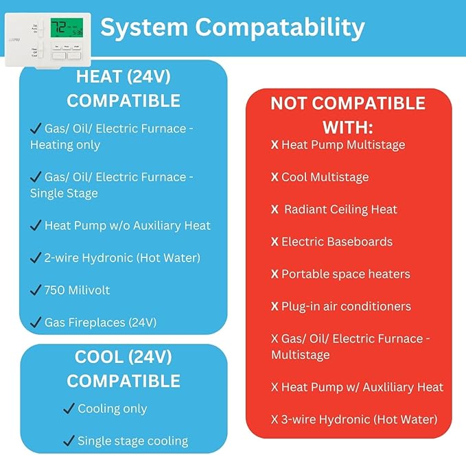 - Install easily with all-in-one programmable/non-programmable settings, simplifying your thermostat experience