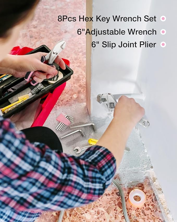- 236- Piece Pink Tool Set - This household tool set comes with all the most useful and necessary tools for home maintenance and daily use. It includes a hammer, level, pliers, magnetic screwdrivers and bits, wrenches, cable ties, utility knife and much more