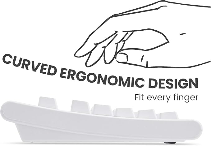 - CURVED DESIGN - Keys with different heights to create a curve that is comfortable to use for long hours of typing