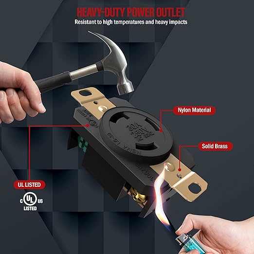 - NEMA outlet is made of high impact-resistant nylon face and body with heavy-duty mounting straps