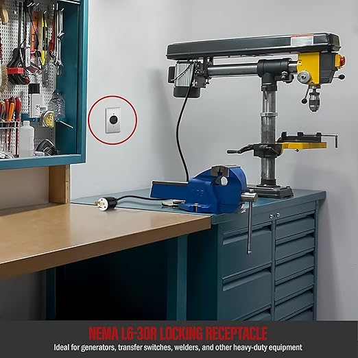 - Industrial grade locking receptacle designed for maximum durability, NEMA L6-30R