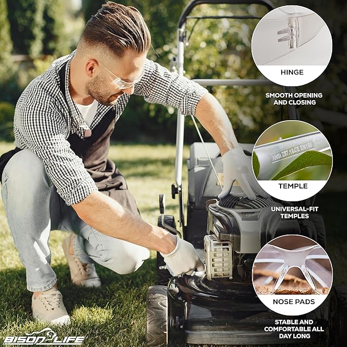 BISON LIFE Safety Glasses - Scratch Resistant Wrap Around Eyewear, Polycarbonate ANSI Z87.1 Impact Resistant Lens