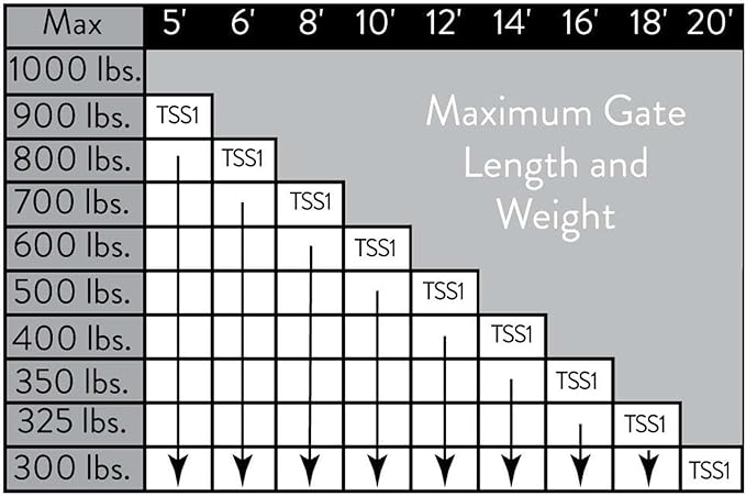 - The Ghost Controls Smart Ready Single Heavy-Duty Automatic Gate Opener TSS1 is optimized for gates up to 20 feet in length or up to 900 lbs. This automatic gate opener is perfect for many types of residential single driveway gates including decorative, chain link, tube gates, etc. Comes with additional round post adapter brackets to easily attach to a tube-style gate.