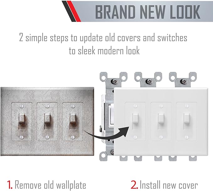 - Completely covers old outdated outlets and switches
