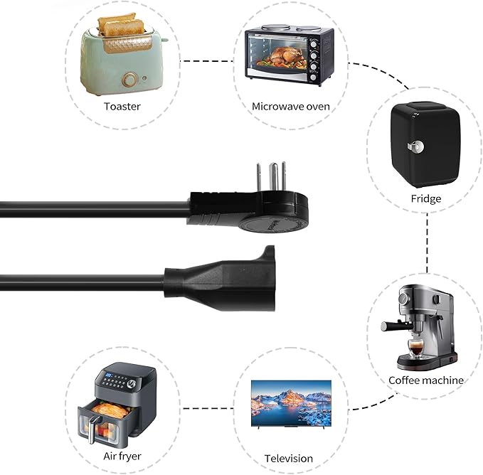 - 【Space-Saving Design】Our flat plug extension cord features a compact and unique design with a length of only 17.3 inches, perfect for small spaces or behind furniture such as sofas, TVs, bookshelves, cabinets, and bedside tables to bring the furniture closer to the wall.This length also avoids clutter with extra wires, making installation neater and easier.