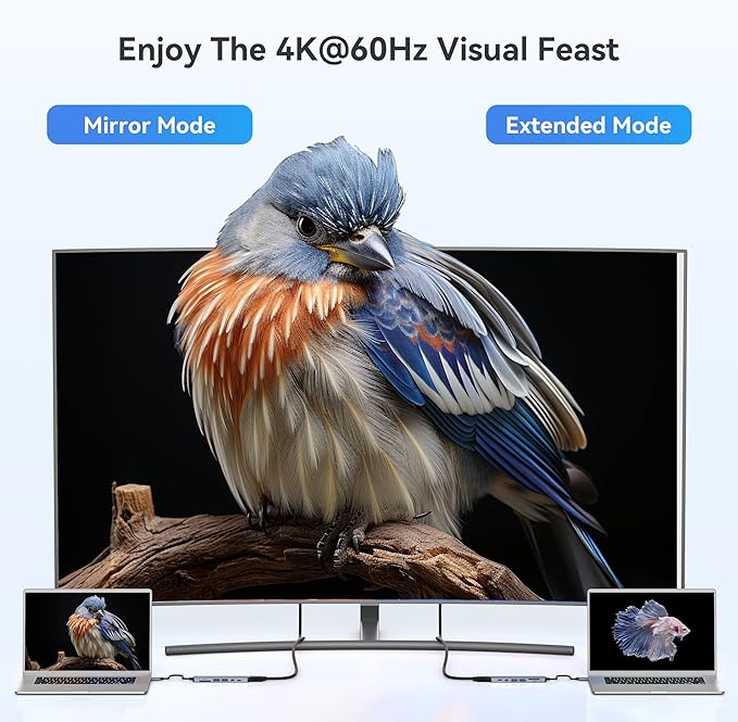 - Enjoy Crystal-Clear 4K@60Hz Video: MacBook Pro Adapter mirrors or extend your screen with USB C hub’s HDMI port and directly stream 4K UHD @60Hz video to HDTV, monitor or projector to see all in sharp and glorious detail, perfect for photographer and video editor