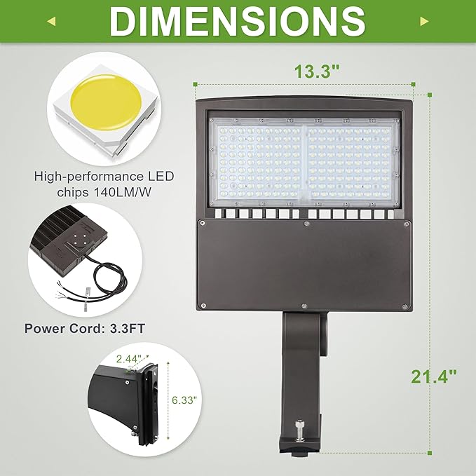 - Versatile Applications: This LED shoebox light is ideal for parking lots, driveways, streets, playgrounds, schools, parks, walkways, store exteriors, farmyards, and more. Its wide, adjustable lighting range makes it perfect for both commercial and residential use. Great for expressways, trunk roads, courtyards, and industrial areas. Reliable lighting for any outdoor space