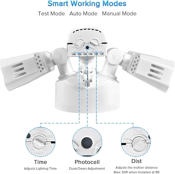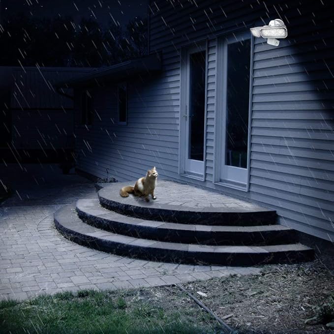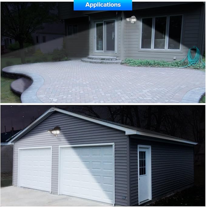 - SUPER BRIGHT: Adjustable ultra-bright dual-head produces up to 100 lumens/watt brightness with 6 LED bulbs. This Super Bright Outdoor Motion Sensor Light secures your home and illuminates your way home.