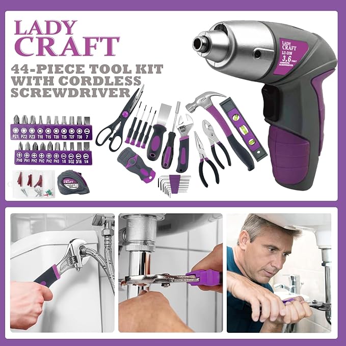 - 【 44PCS TOOL KIT】44pcs lady tools set ,good for DIY and home repair maintenance .Great as gift for family members, colleagues, friends, and specially for nice ladies .Perfect present for Mother's Day, Christmas, Birthday, Anniversary, Valentine's Day, etc