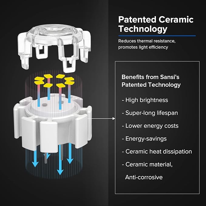 - HIGH QUALITY: Patented Ceramic Heat Dissipation Technology (CHDT), boosts lighting performance and cooling efficiency are greatly improved, giving it up to 50,000 hours lifespan. This weatherproof light provides a sustainable and stable performance for outdoor use.