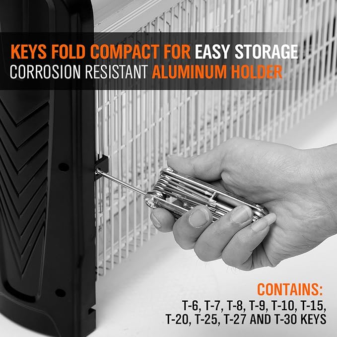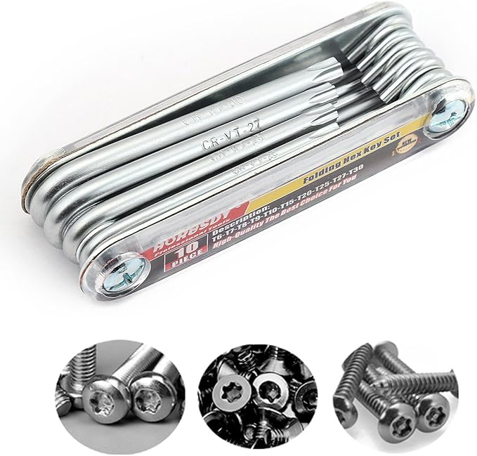 - Tamper Resistant Star Key Set Crafted with premium chrome vanadium steel, and each star tool folds neatly into the handle for quick, easy access.