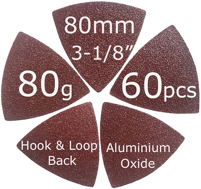 XXGO 60 Pcs 80 Grits 3-1/8 Inch 80mm Triangle Oscillating Tool Sanding Paper for Wood Sanding XG802080