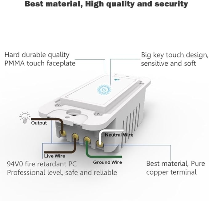 - New Design : Safe and beautiful, water-proof & moisture-proof & fire-proof, avoid electric shock risk, requires a neutral wire / Single-Pole switch/ 120V 15A compatible.