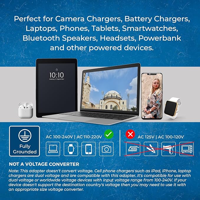 - Important: This is just a travel adapter, it will not work with devices that require a voltage converter. It will only work with dual voltage products such as cell phones, chargers, & laptops etc.