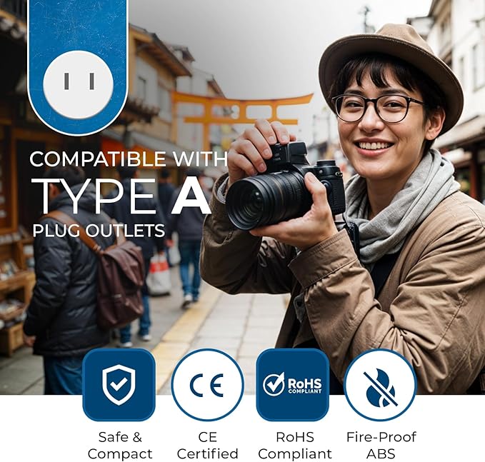 - Outlet adapter Type a plug - works in countries such as Japan, Philippines