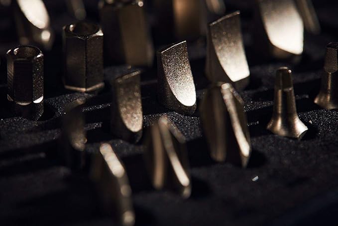 - IFIXIT QUALITY: Anodized aluminum driver and 1/4" bits made with high-quality S2 steel. These precisely machined bits fit properly into the screws and protect both the bit and the fasteners from damages. Covered by iFixit's Lifetime Warranty.