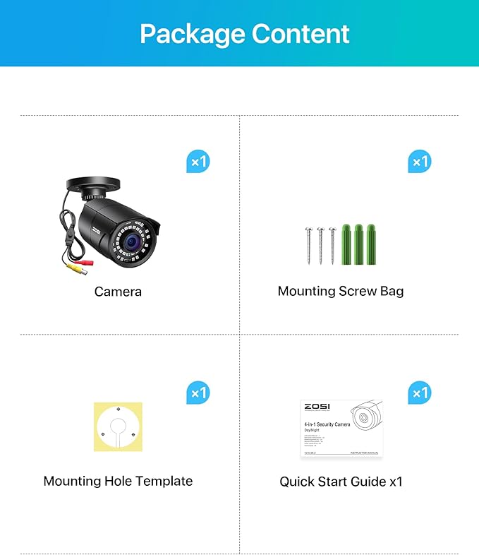 - (3). [ IP67 Metal Weatherproof ] __ Camera used high quality metal aluminum materials,3-Axis camera stand,cable through bracket for hassle free use in rainy or snowy days.(Camera Power Supply and Coaxial Video Cables are not included but they are required and sold separately.)