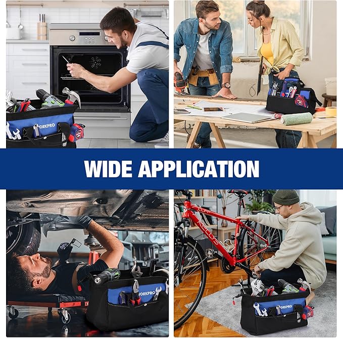 WORKPRO 13-inch Tool Bag, Wide Mouth Tool Tote Bag with Inside Pockets for Tool Storage