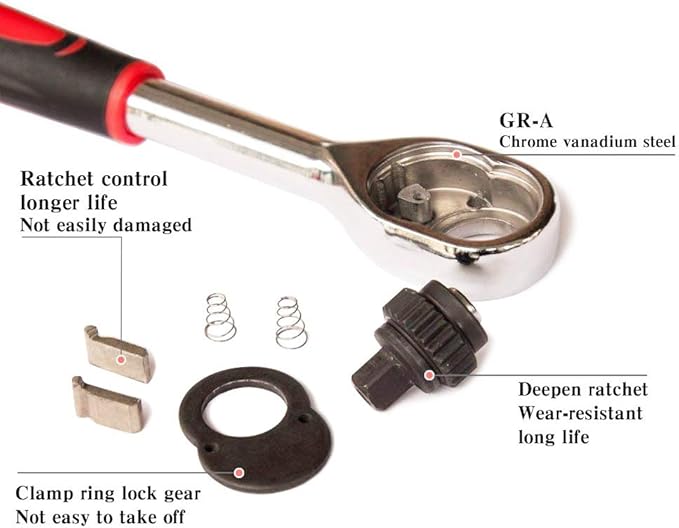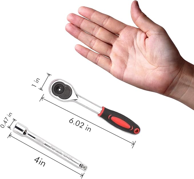 - 1/4" PROFESSIONAL RATCHET HANDLE - Ergonomic easy-grip ratcheting handle could be quickly released, make you comfortably reverse the switch and let the product exceptional durability.