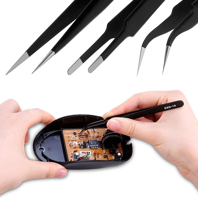 - ESD Precision Tweezers : Each precision tweezer has resistive ESD coating. It will protect delicate electronic components and handles from damaging of static.