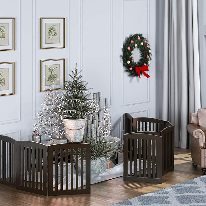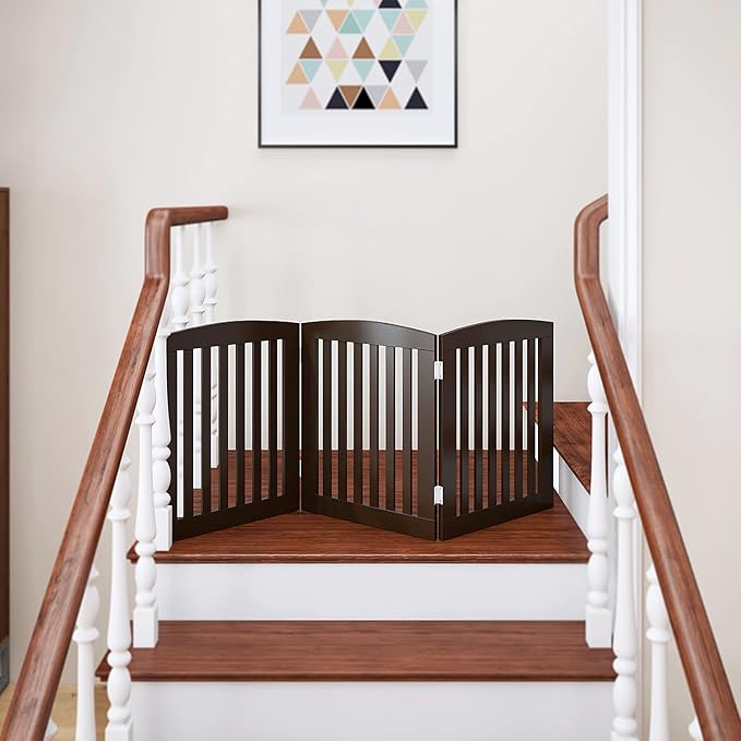 PAWLAND Wooden Freestanding Foldable Pet Gate for Dogs, 24 inch 3 Panels Step Over Fence, Dog Gate for The House, Doorway, Stairs, Extra Wide (Espresso, 24" Height-3 Panels)