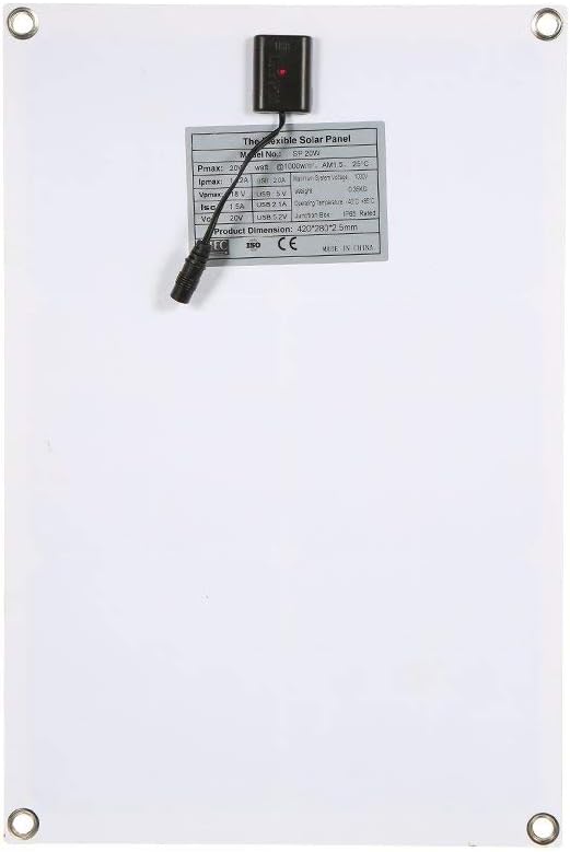 Lixada Solar Panel Charger USB Port Portable High Power Monocrystalline Solar Panel Phone USB Devices Charger & Car Battery Charging Clip Line for Cell Phone Camping RV Boat Marine - 20Watt