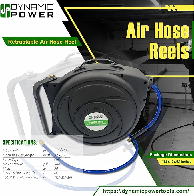 - Effortless Hose Retraction: The spring-powered mechanism quickly and automatically retracts the hose with ease, keeping your workspace organized and efficient.