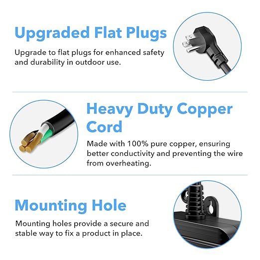 - WEATHERPROOF: Our plug is built to stand the test of rain and harsh weathers. Please place the plug as least 2 feet off the ground with the plug pointing straight down to avoid water damage.