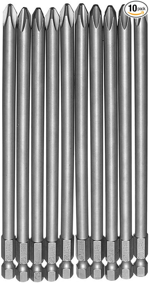 Rocaris 6 in Phillips Screwdriver Bit Sets 1/4 Inch Hex Shank Magnetic Screwdriver Bits Cross Head S2 Steel Screwdriver Bits 10 Pack