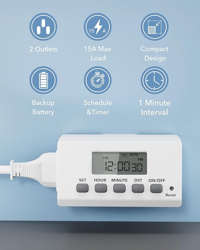 - ✓ SAFE & RELIABLE: This digital lamp timers for electrical outlets rigorously controlled for quality and safety. Rating: 125V, 60 Hz, 15A/1875W