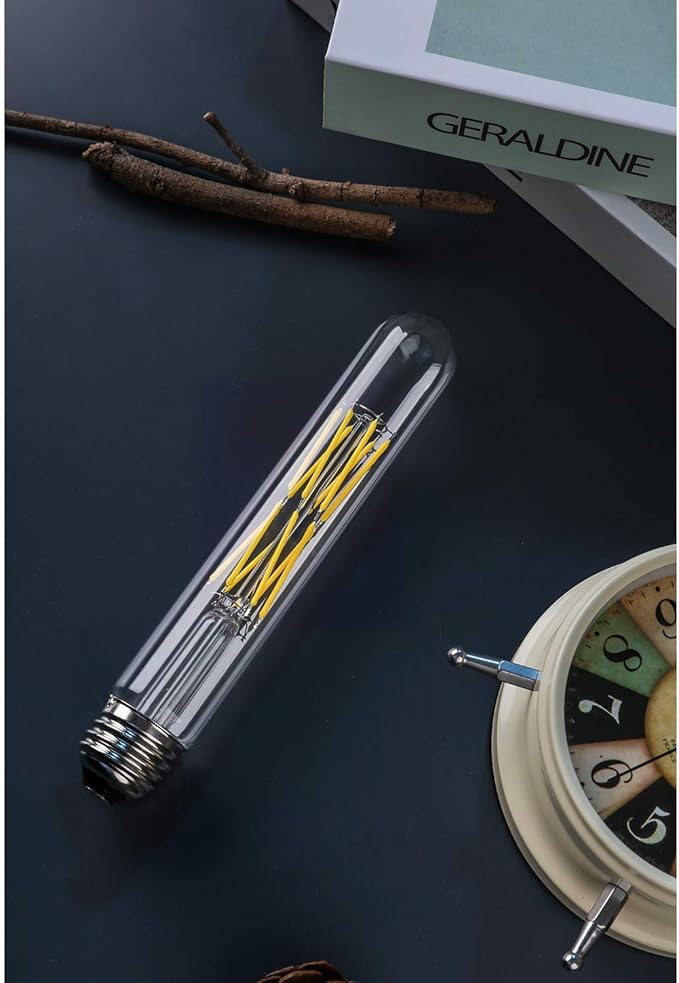 Leools 12W Dimmable Edison Led Tubular Bulb T10/T30,E26 Medium Base Filament Lamp 100 Watt Equivalent 4000K Daylight Glow,Vintage Antique Bulbs,7.3in(185mm),3-Pack