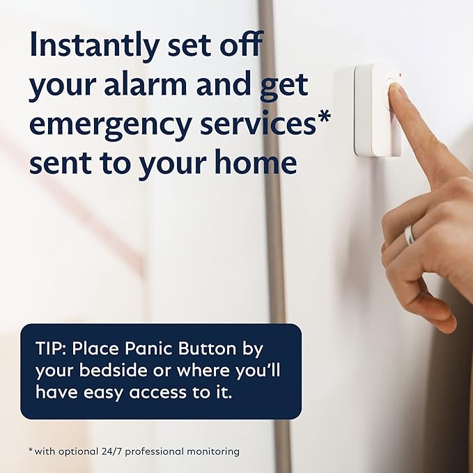- Instantly sound the alarm with a Panic Button - Triggers the alarm and dispatches police fast - with silent panic option to signal for help discreetly. (Requires a subscription to 24/7 Professional Monitoring)