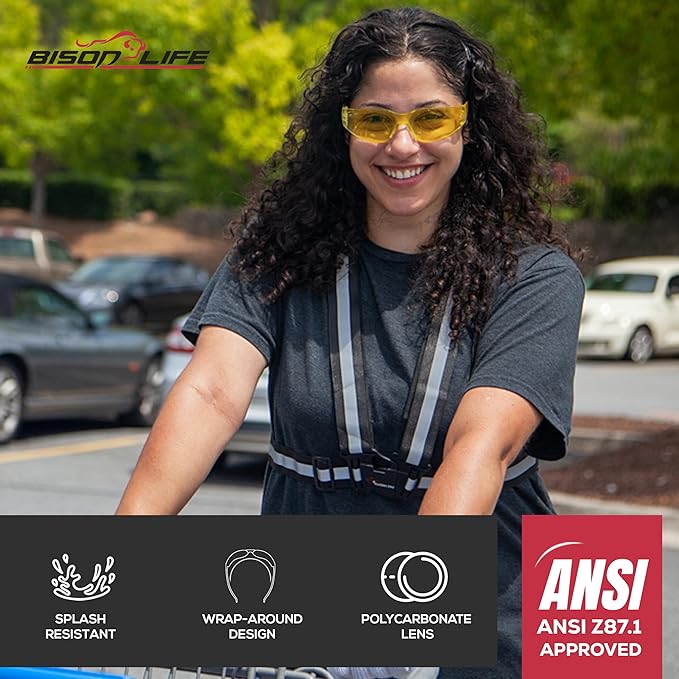 - ANTI-SCRATCH: Introducing Bison Life's exclusive line of Keystone Series Safety Glasses. Crafted with ultra-light, durable polycarbonate, these shatterproof lenses surpass ANSI Z87.1 standards. The impact-resistant, color-tinted lenses are specially coated for anti-scratch protection.