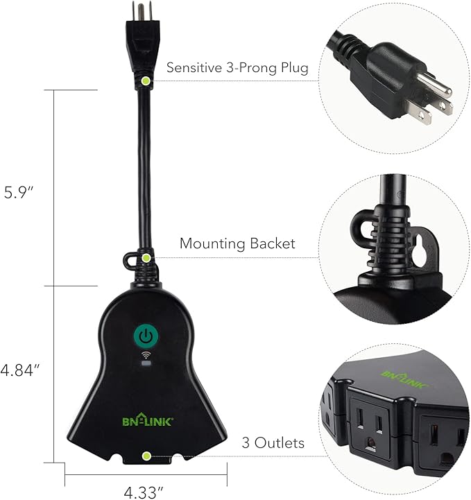 - [CONTROL MULTIPLE DEVICES]: BN-LINK Outdoor Smart Plug controls up to 3 devices simultaneously(NOT indiviudally controlled), making it easy to manage your outdoor electronics.