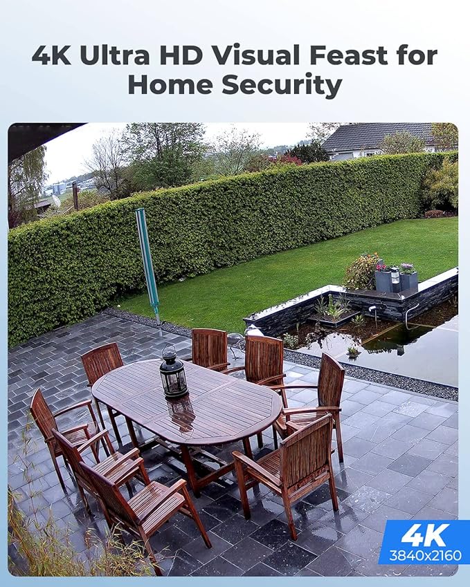 - 4K UlTRA HD VISUAL FEAST: This PoE security camera jumps from 5MP to 4K (8MP) Ultra HD, which is 1.6X clearer than 5MP and 4X clearer than 1080p. With the ability to capture 4K at 25fps videos, astoundingly sharp and crisp details around home or store will be reproduced perfectly in live streaming and playback.